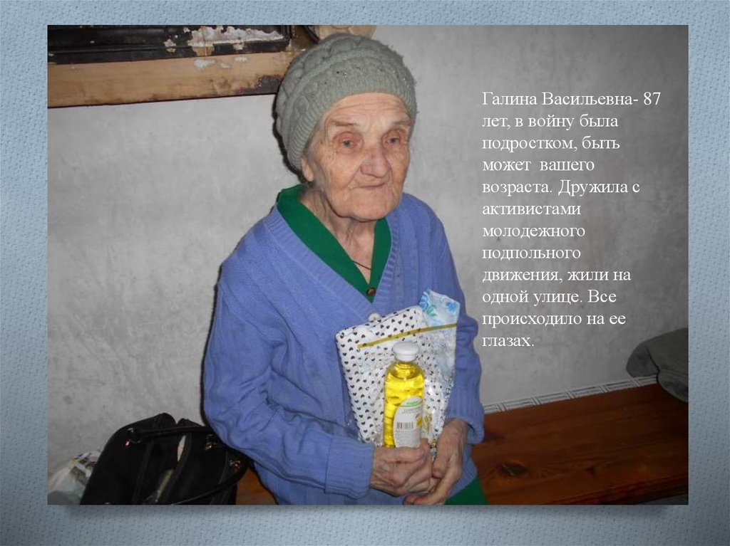 Галина Васильевна- 87лет, в войну была