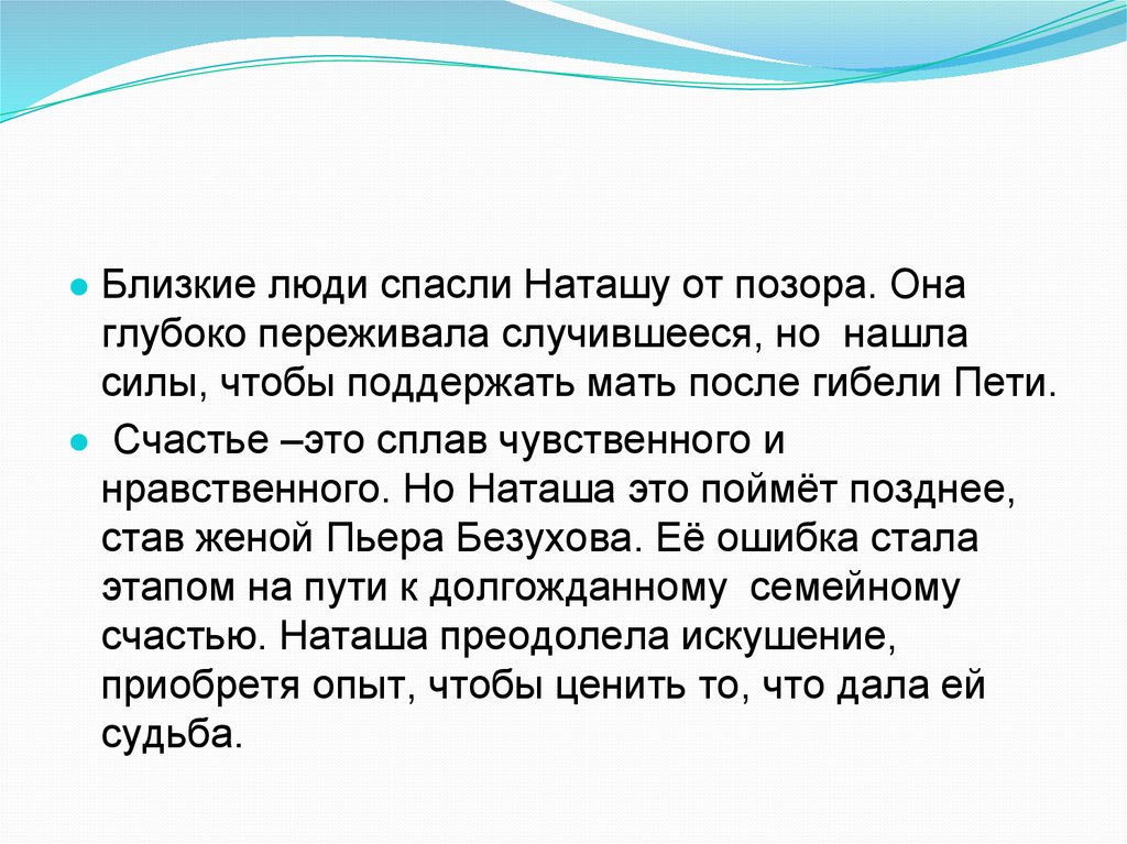 ● Близкие люди спасли Наташу от позора. Онаглубоко переживала случившееся, но нашла