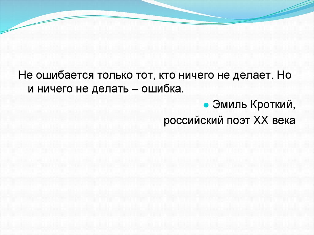 Не ошибается только тот, кто ничего не делает. Нои ничего не делать – ошибка.