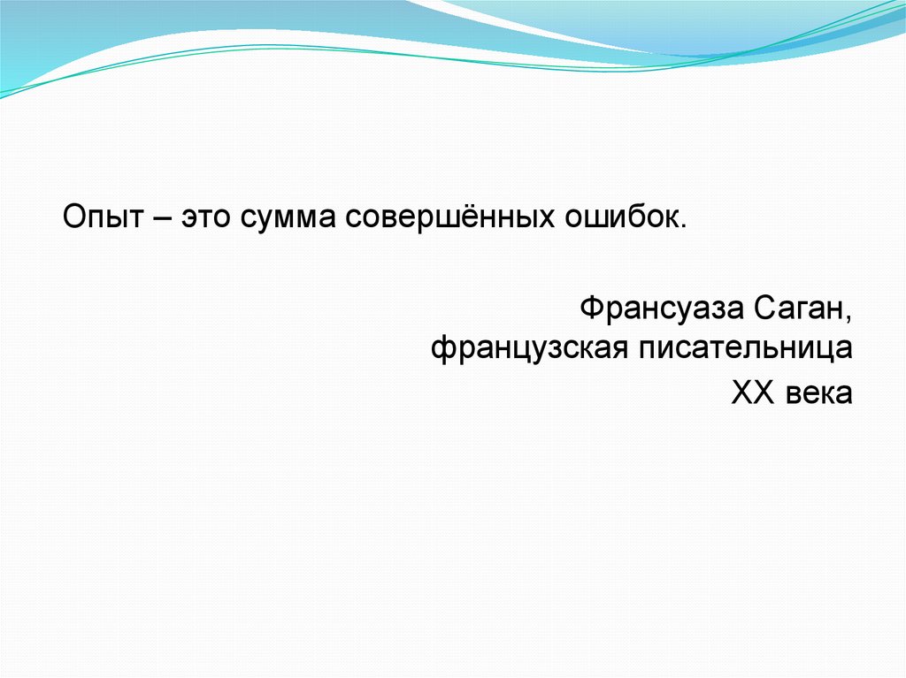 Опыт – это сумма совершённых ошибок.Франсуаза Саган,