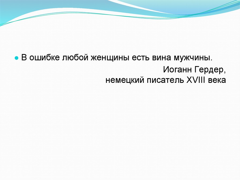 ● В ошибке любой женщины есть вина мужчины.Иоганн Гердер,