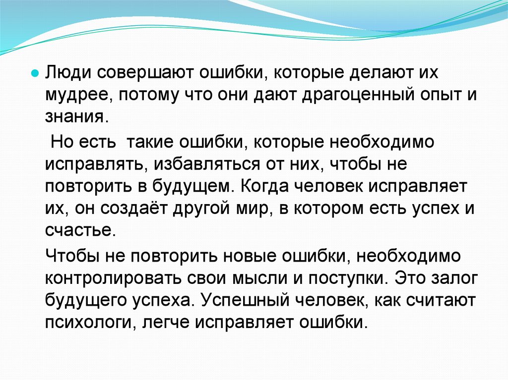 ● Люди совершают ошибки, которые делают ихмудрее, потому что они дают драгоценный опыт и