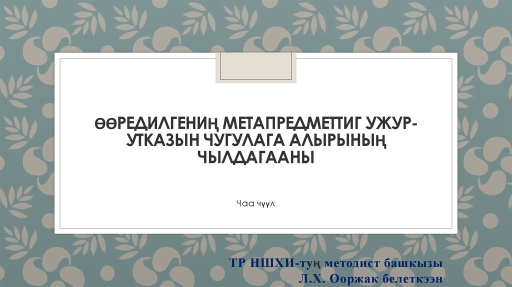 ӨӨРЕДИЛГЕНИҢ МЕТАПРЕДМЕТТИГ УЖУРУТКАЗЫН ЧУГУЛАГА АЛЫРЫНЫҢЧЫЛДАГААНЫ