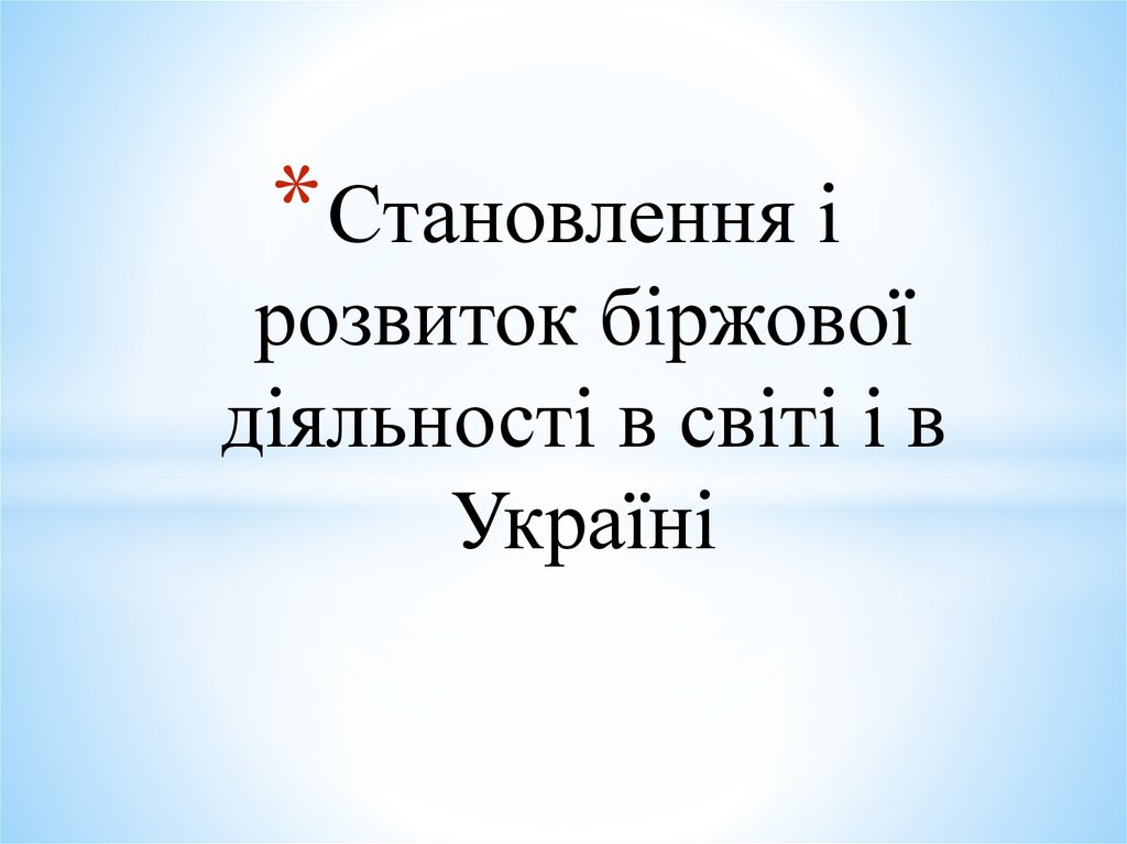 1. Становлення і розвиток біржової діяльності в світі і в Україні