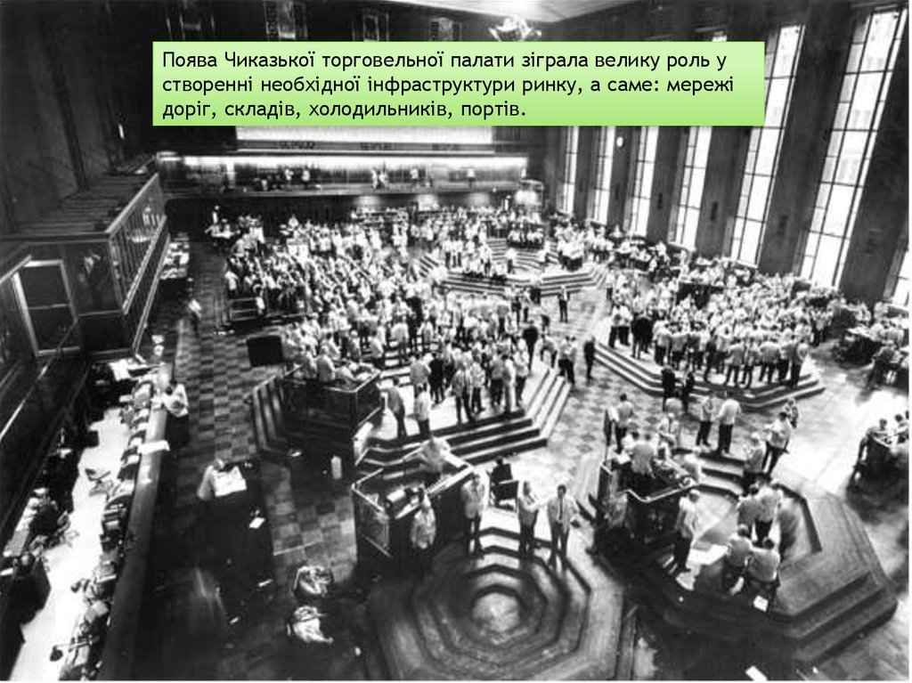 Поява Чиказької торговельної палати зіграла велику роль устворенні необхідної інфраструктури ринку, а саме: мережі