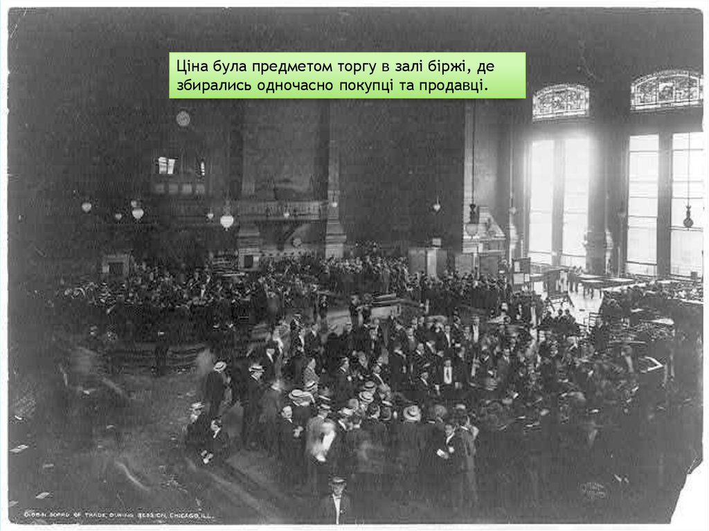Ціна була предметом торгу в залі біржі, дезбирались одночасно покупці та продавці.