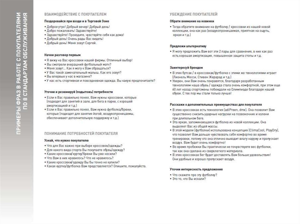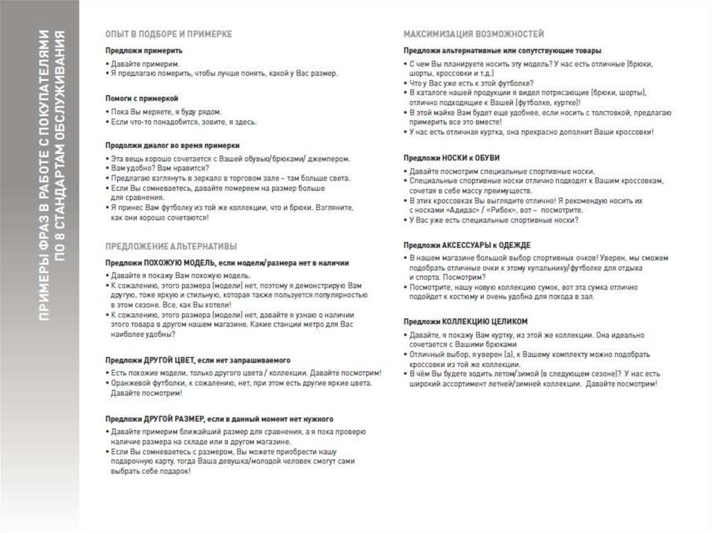 Примеры фраз в работе с покупателями по 8 стандартам обслуживания