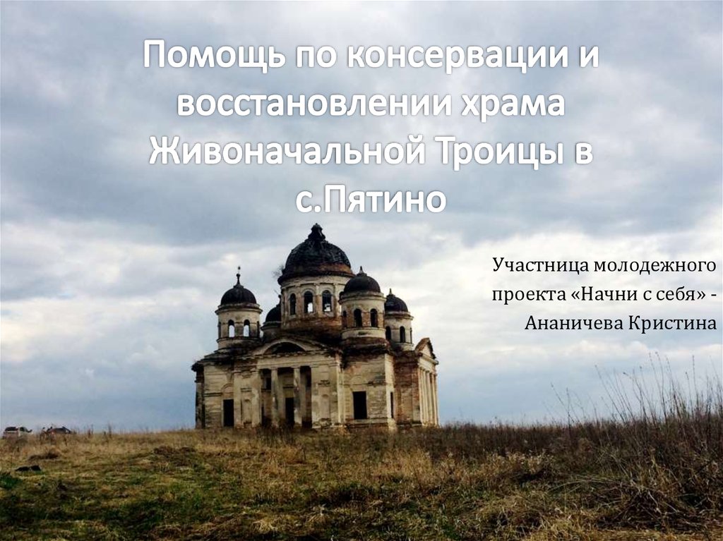 Помощь по консервации и восстановлении храма Живоначальной Троицы в селе Пятино
