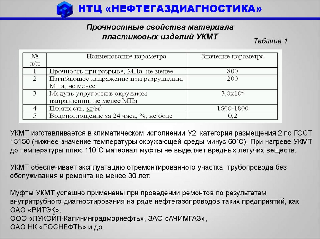 Прочностные свойства материала пластиковых изделий УКМТ приведены в
