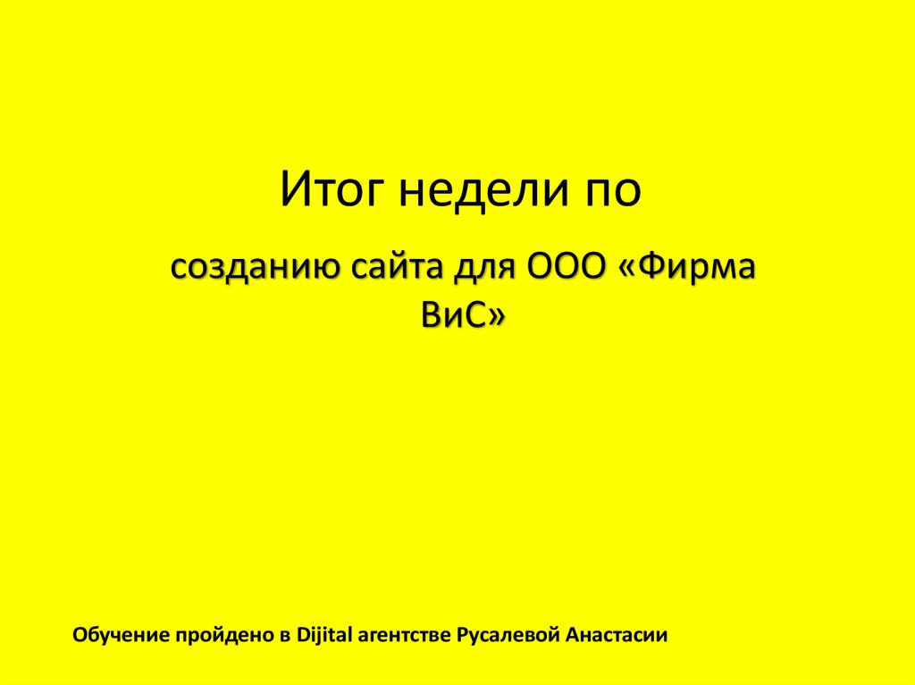 Итог недели по созданию сайта для ООО «Фирма ВиС»