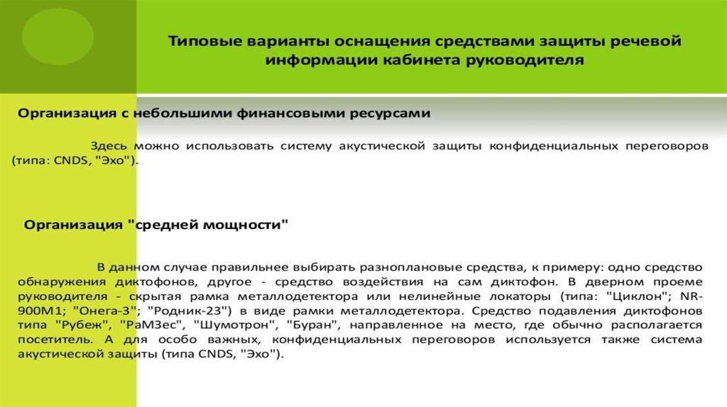 Защита кабинета руководителя от утечки информации по акустическому каналу