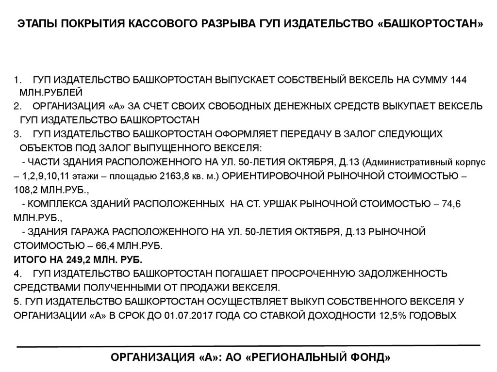 Проект реструктуризации задолженности ГУП Издательство Башкортостан