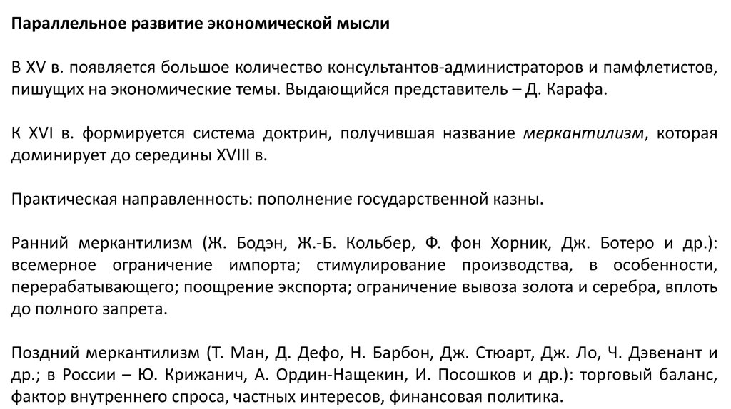 Параллельное развитие экономической мыслиВ XV в. появляется большое количество консультантов-администраторов и памфлетистов,
