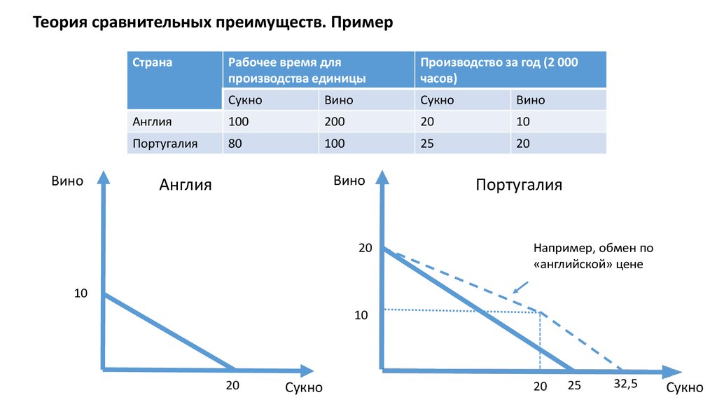 Д. Рикардо (1772 – 1823) и теория сравнительных преимуществ- Трудовая теория стоимости: стоимость товаров зависит от относительного