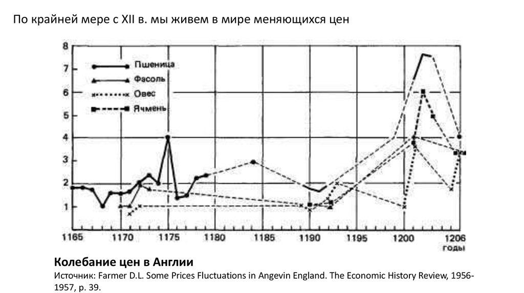 По крайней мере с XII в. мы живем в мире меняющихся ценКолебание цен в Англии