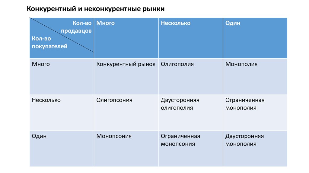 Конкурентный рынок – рынок, где покупателей и продавцов так много, что никто из