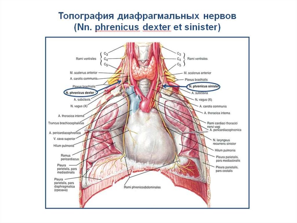 нервом (диафрагмальная часть легкого) и межреберными нервами