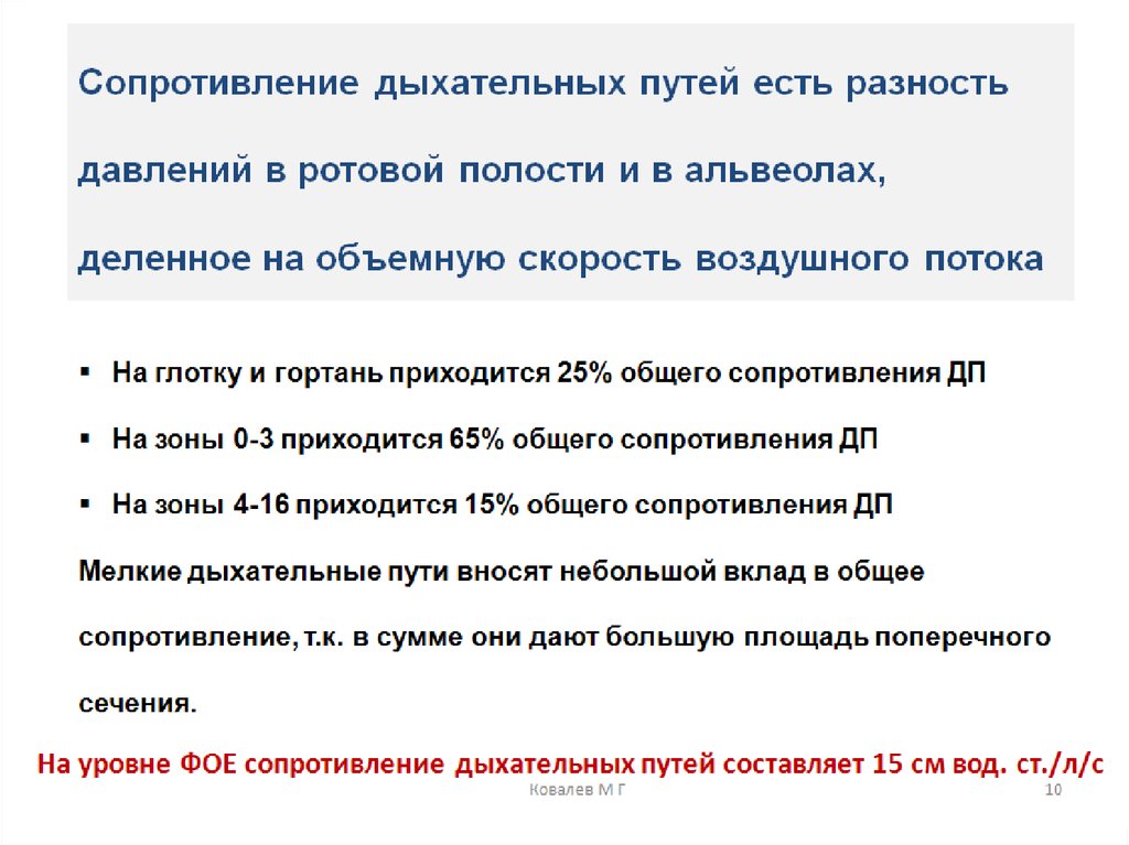 На уровне ФОЕ сопротивление дыхательных путей составляет 15 см вод. ст./л/с