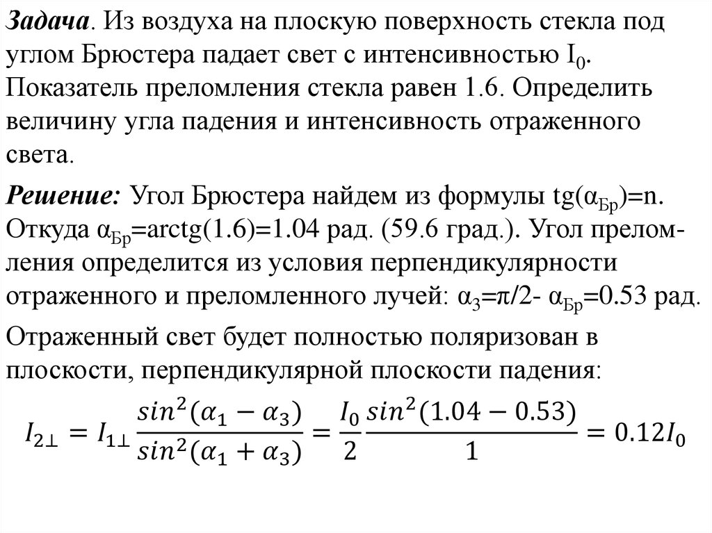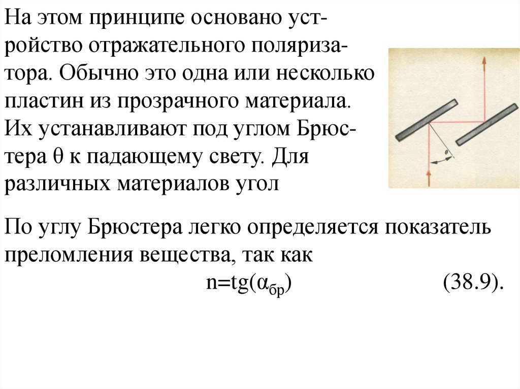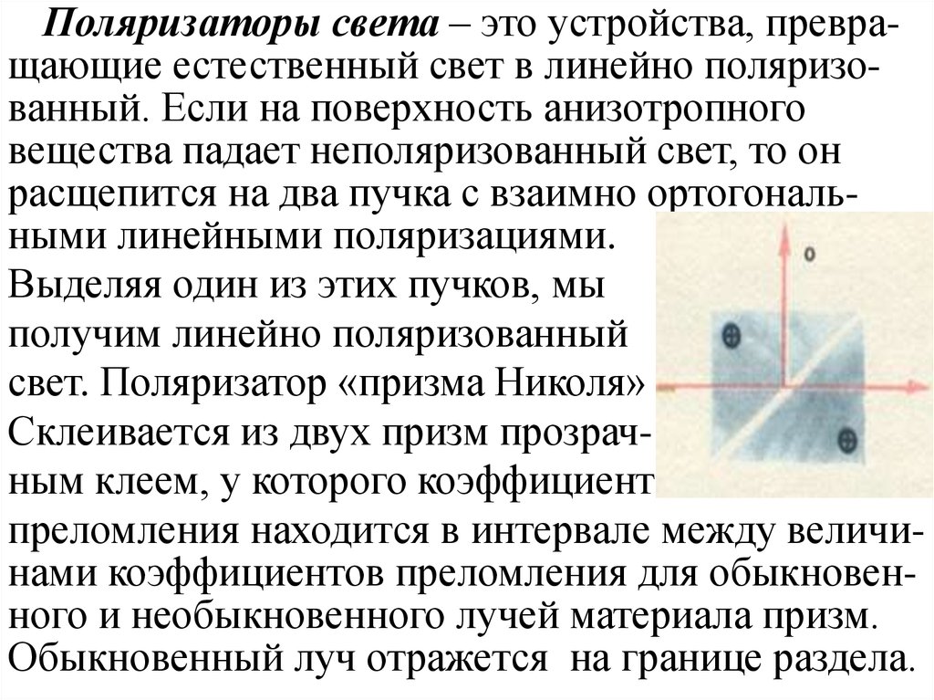 Поляризация света играет важную роль впроцессах преломления и отражения его от