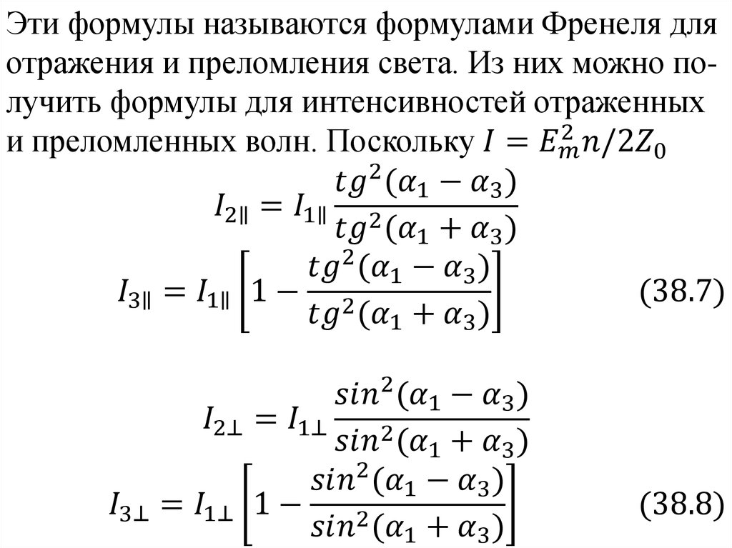 выразить световые векторы отраженных преломленных волн через световые векторы падающих