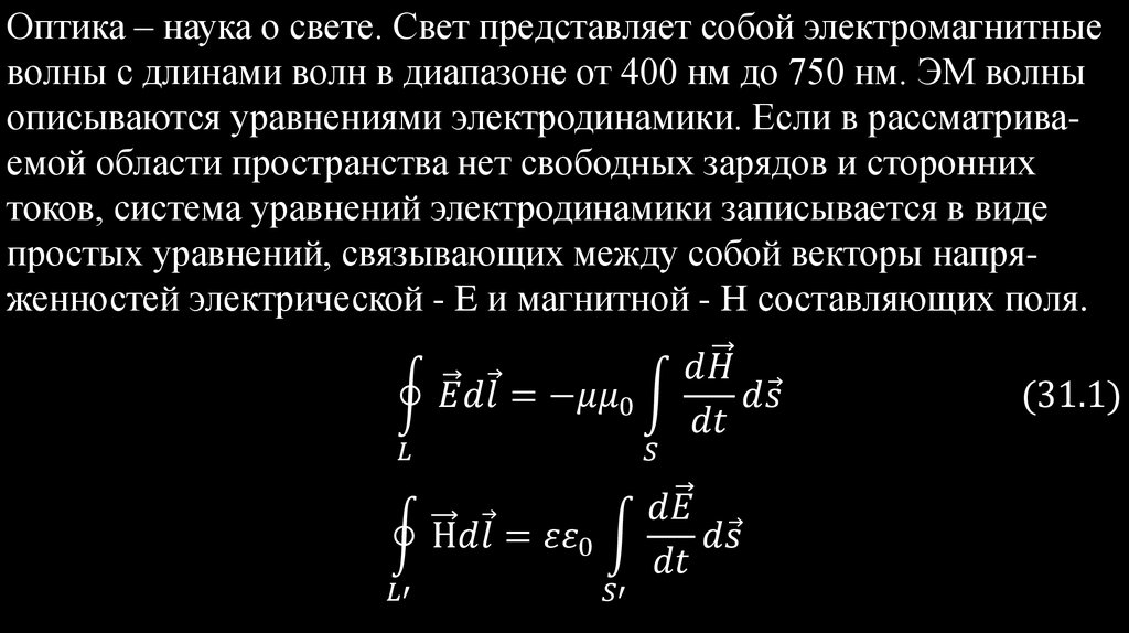 описываются уравнениями электродинамики. Если в рассматриваемой области пространства нет свободных зарядов и сторонних