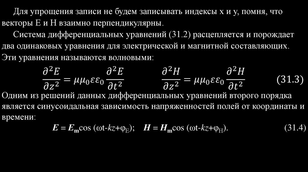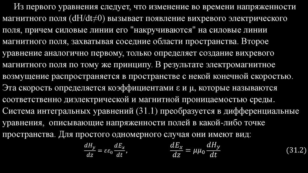 простых уравнений, связывающих между собой векторы напряженностей электрической - E и магнитной - H составляющих поля.