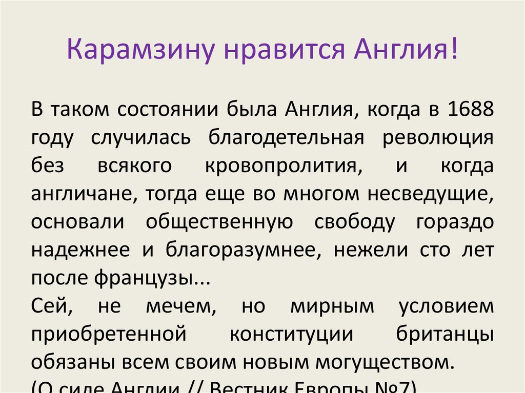 Карамзину нравится Англия!В таком состоянии была Англия, когда в 1688