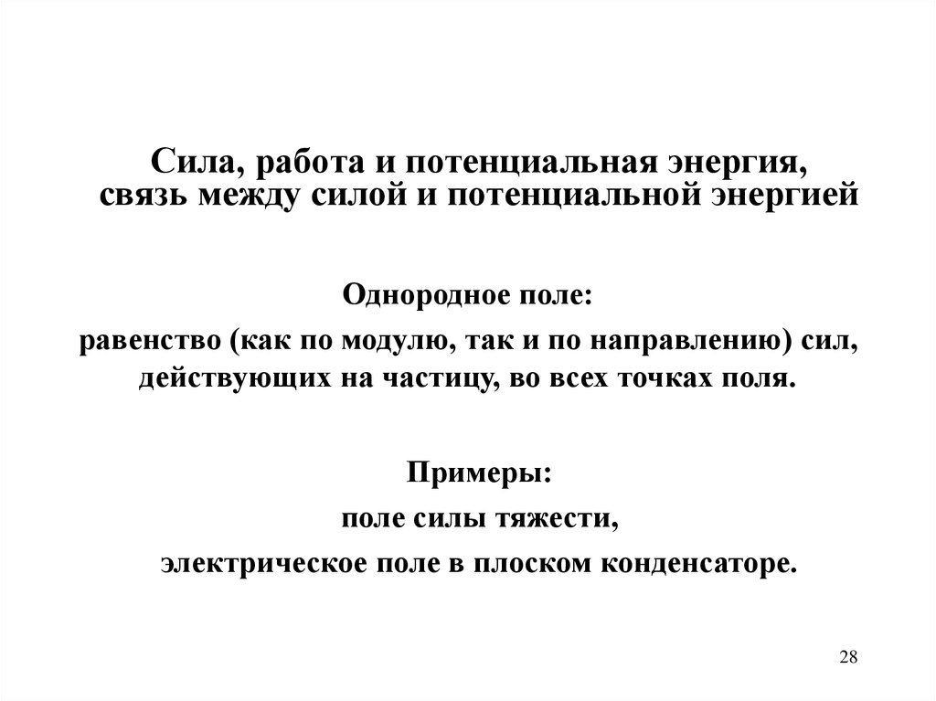 Консервативные и неконсервативные силыСтационарное однородное поле
