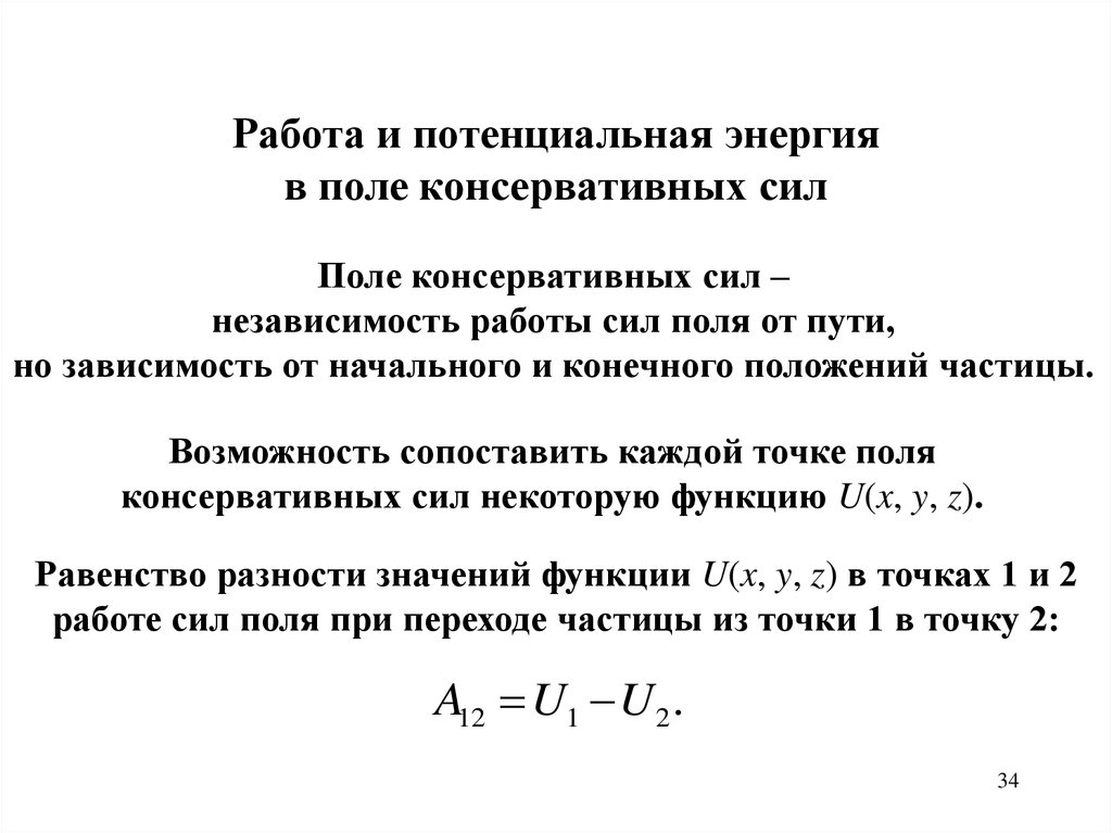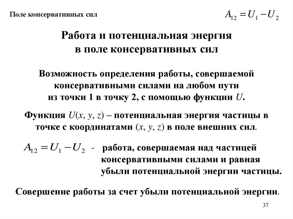 консервативных сил некоторую функцию U(x, y, z).