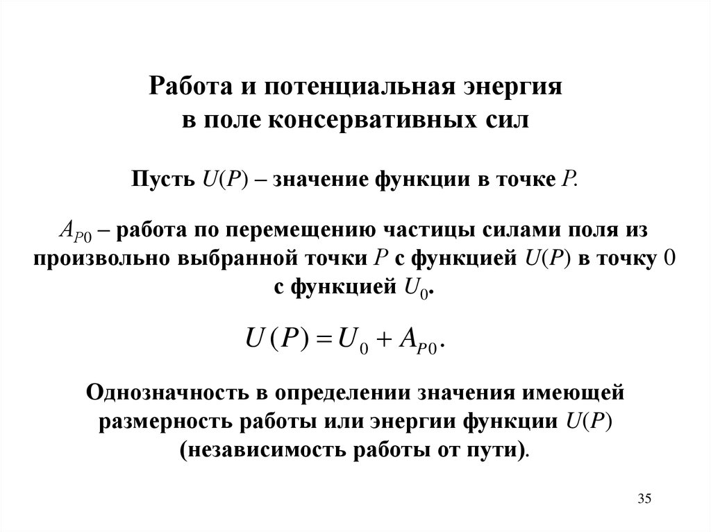 U ( P ) U 0 AP 0Работа и потенциальная энергия