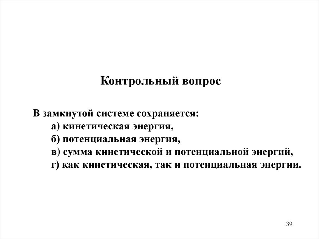 Контрольный вопросВ замкнутой системе сохраняется: