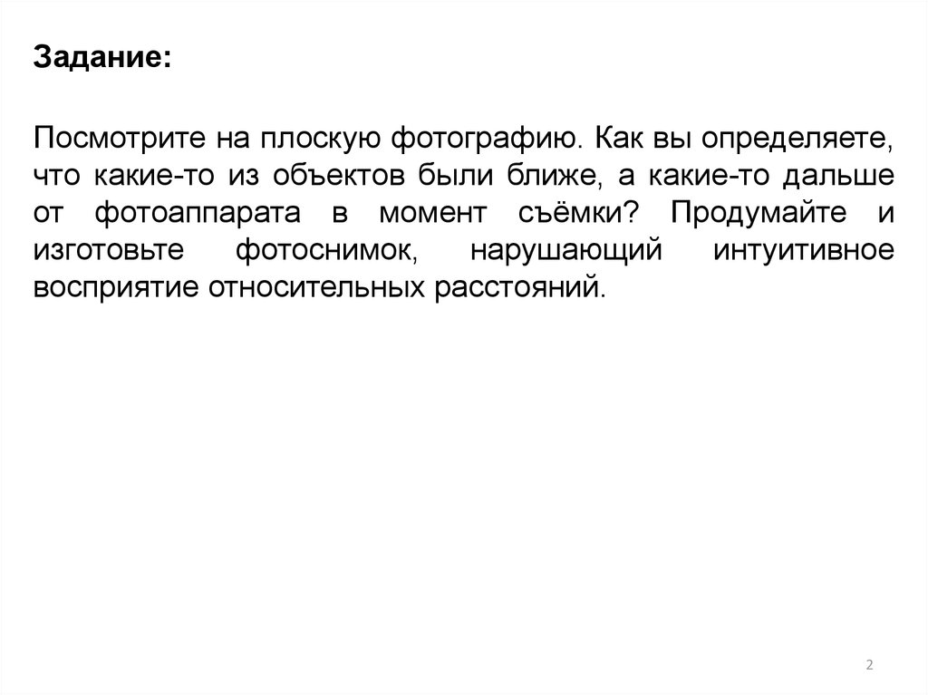 Задание:Посмотрите на плоскую фотографию. Как вы определяете,