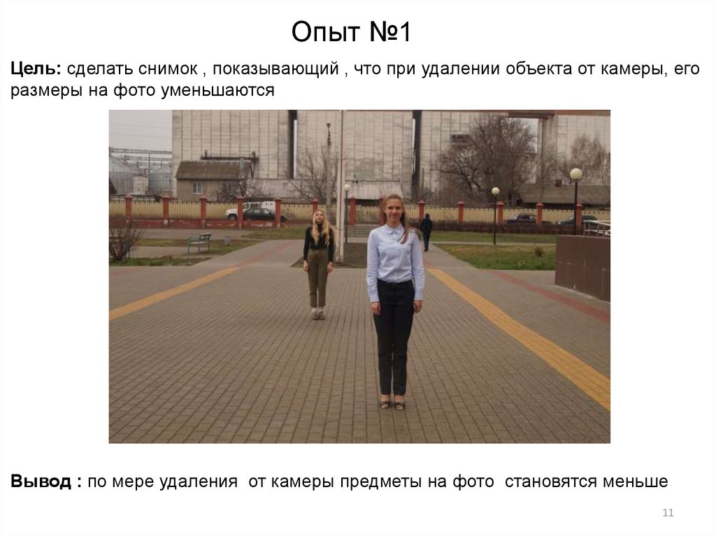 Опыт №1Цель: сделать снимок , показывающий , что при удалении объекта от камеры, его