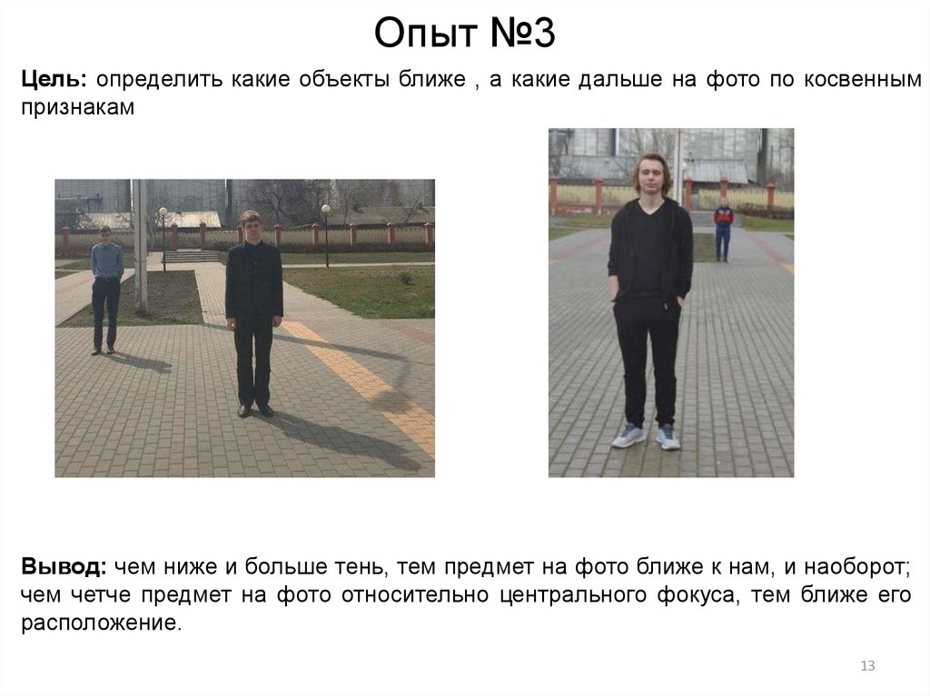 Опыт №3Цель: определить какие объекты ближе , а какие дальше на фото по косвенным