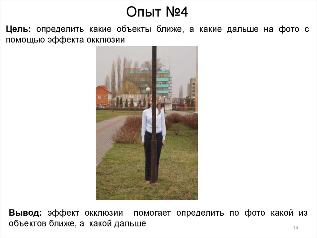 Опыт №4Цель: определить какие объекты ближе, а какие дальше на фото с