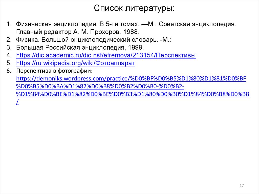 Список литературы:1. Физическая энциклопедия. В 5-ти томах. —М.: Советская энциклопедия.