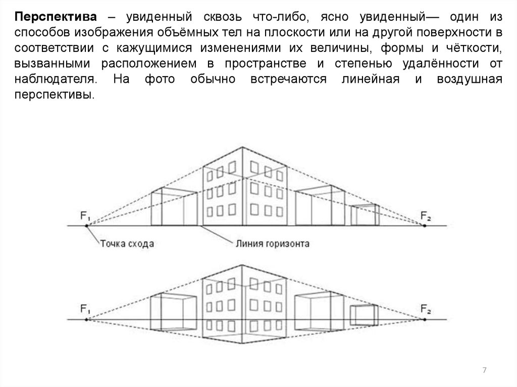 Перспектива – увиденный сквозь что-либо, ясно увиденный— один изспособов изображения объёмных тел на плоскости или на другой поверхности в