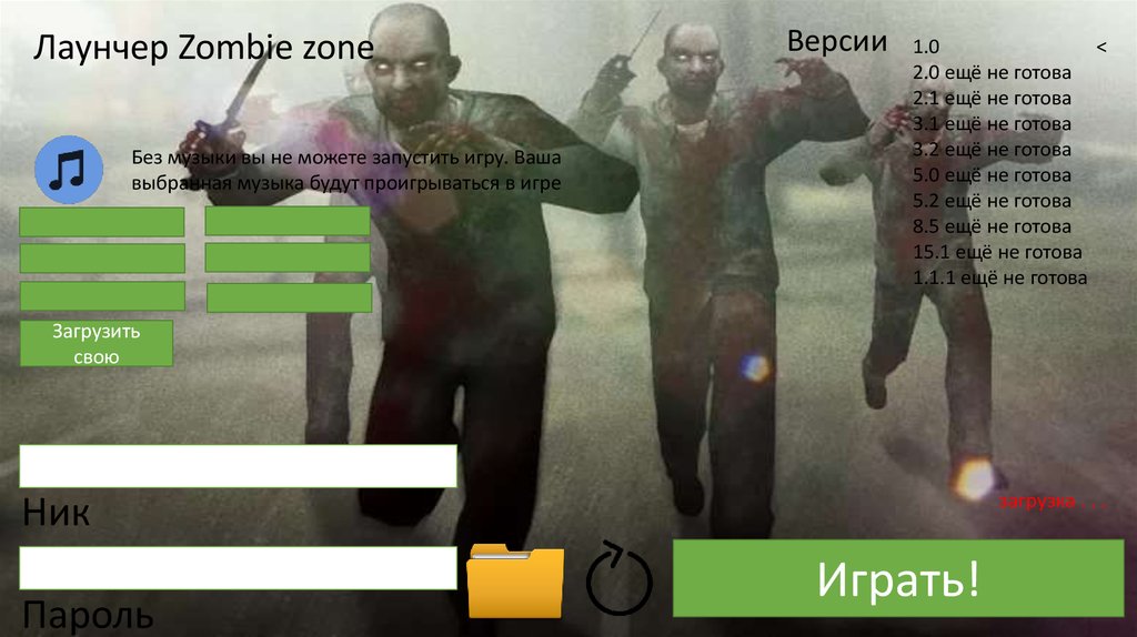 Лаунчер Zombie zoneБез музыки вы не можете запустить игру. Ваша