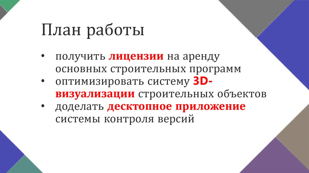 • оптимизировать систему 3Dвизуализации строительных объектов