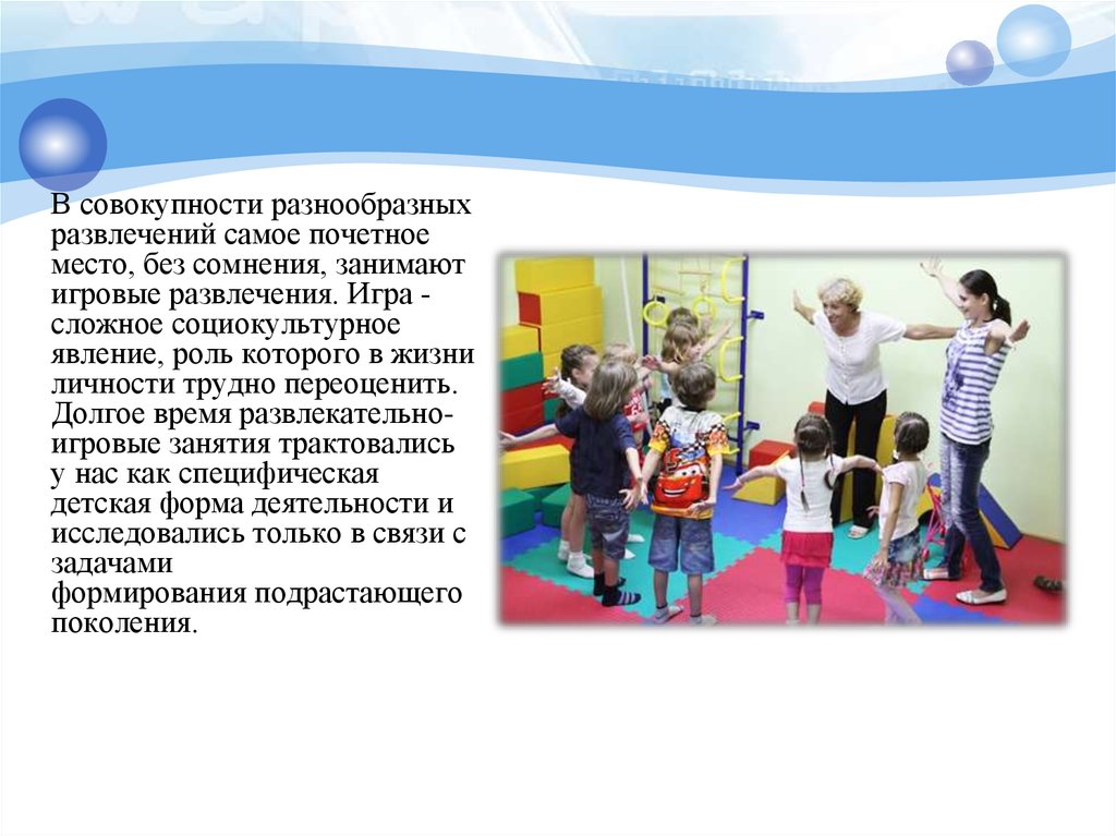 Долгое время развлекательноигровые занятия трактовались