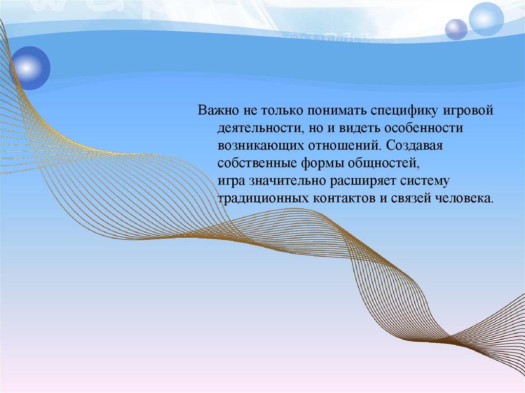 Важно не только понимать специфику игровойдеятельности, но и видеть особенности