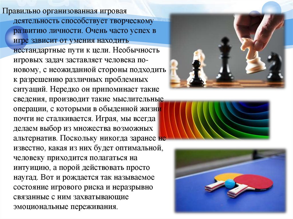 игровых задач заставляет человека поновому, с неожиданной стороны подходить