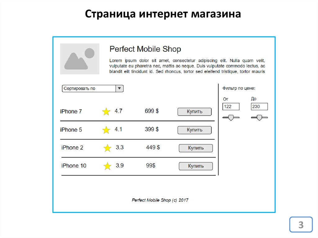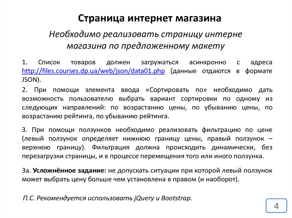 Страница интернет магазинаНеобходимо реализовать страницу интерне