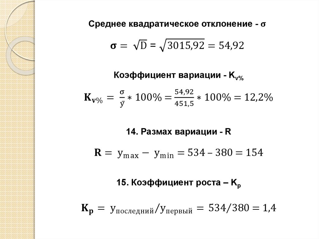 13. Расчеты коэффициента вариацииГоды