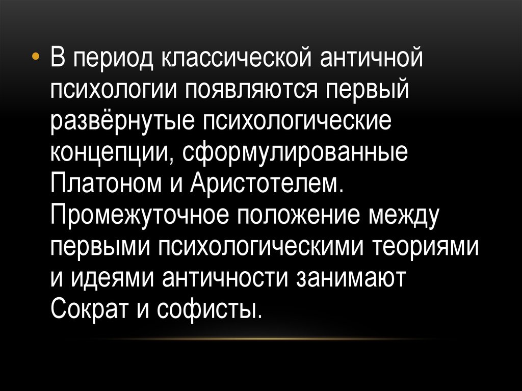 • В период классической античнойпсихологии появляются первый