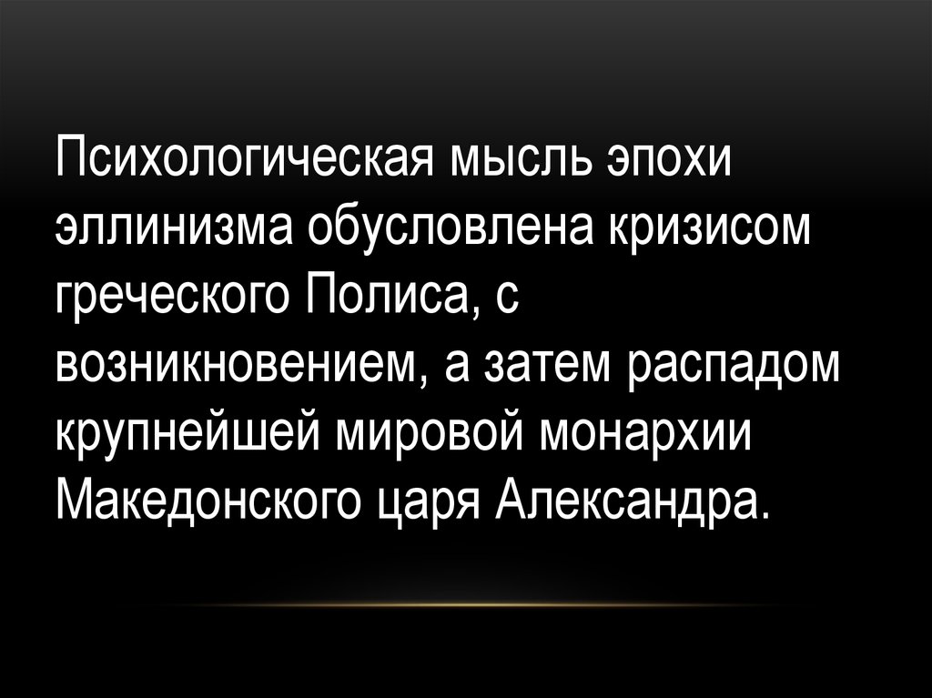 Психологическая мысль эпохиэллинизма обусловлена кризисом