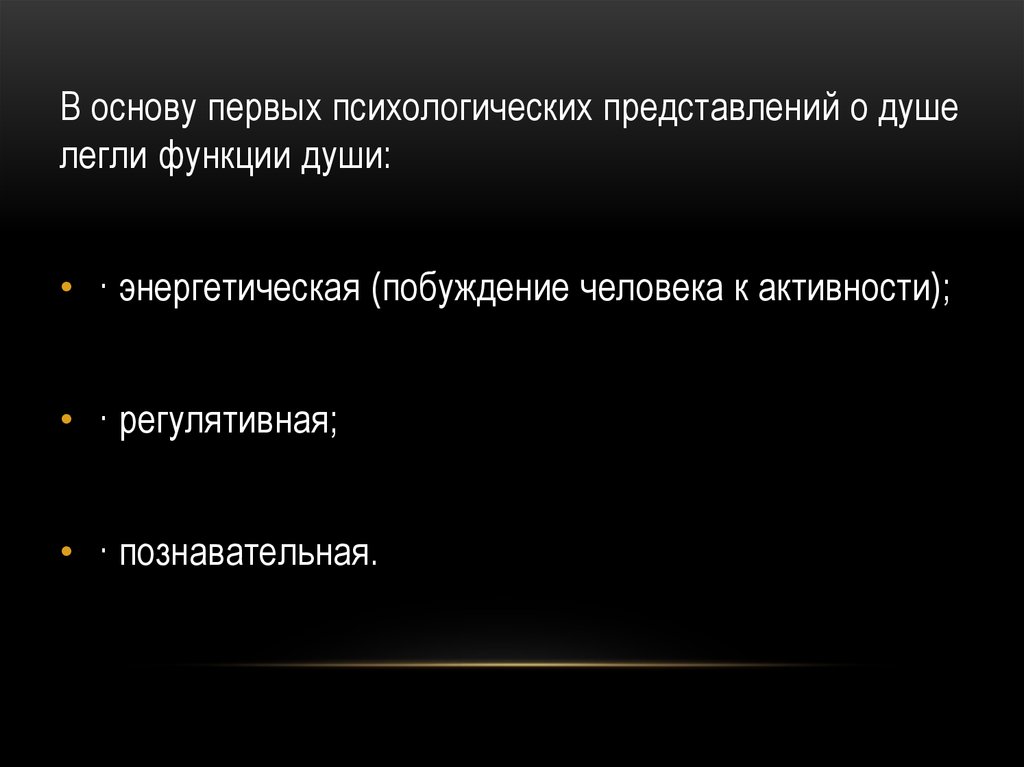 В основу первых психологических представлений о душелегли функции души: