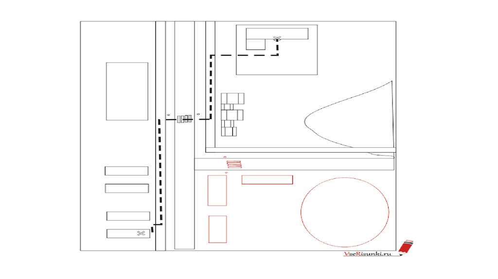 • Этап 5. Теперь начертим еще одну пешеходную дорожку черезпроезжую часть, напротив вашего дома через дорогу три жилых
