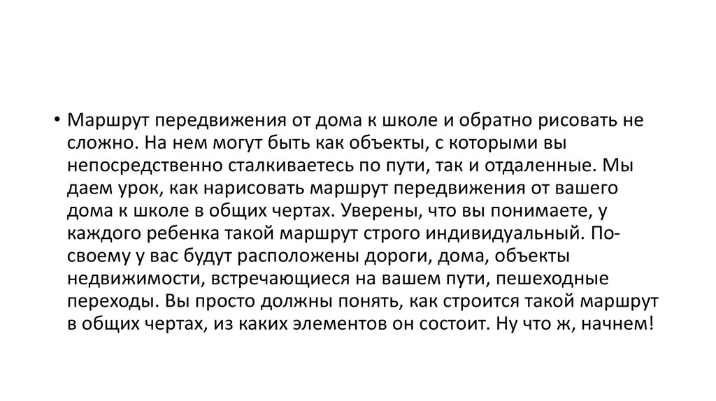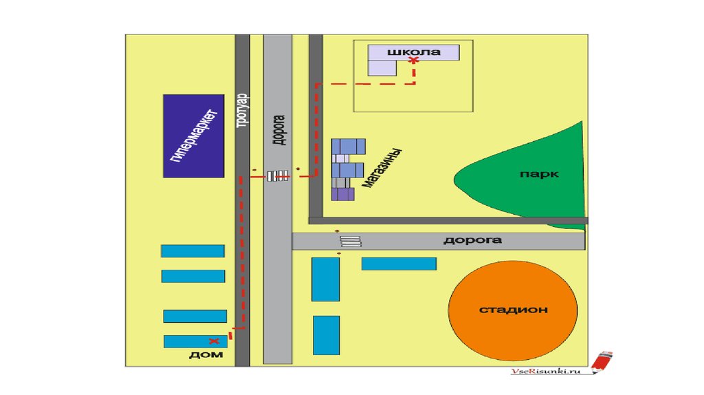 • Маршрут передвижения от дома к школе и обратно рисовать несложно. На нем могут быть как объекты, с которыми вы