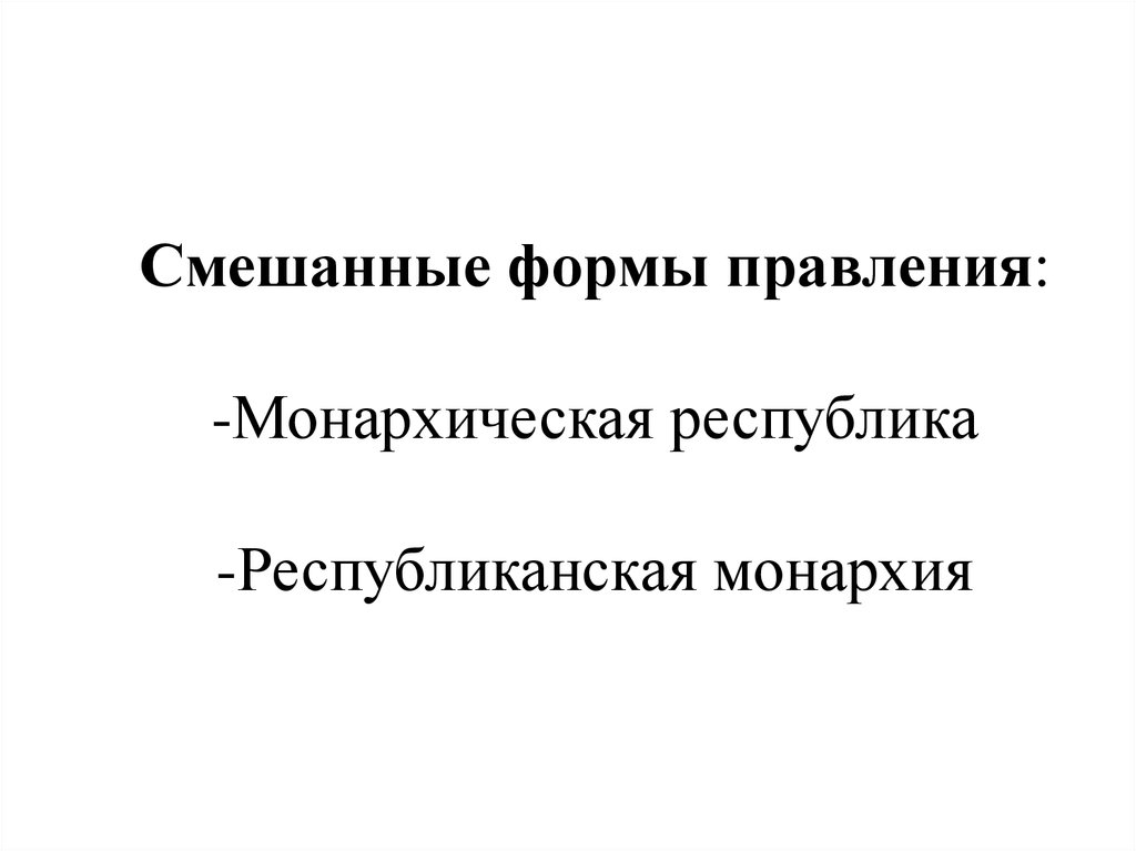 Смешанные формы правления:-Монархическая республика